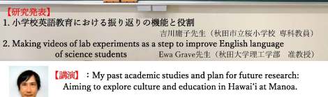 On November 15, 12:30 to 16:30 (Akita Standard Time), the Akita Association for English Studies (AAES) will be holding its annual conference on-line. All are welcome to participate! Registration before […]